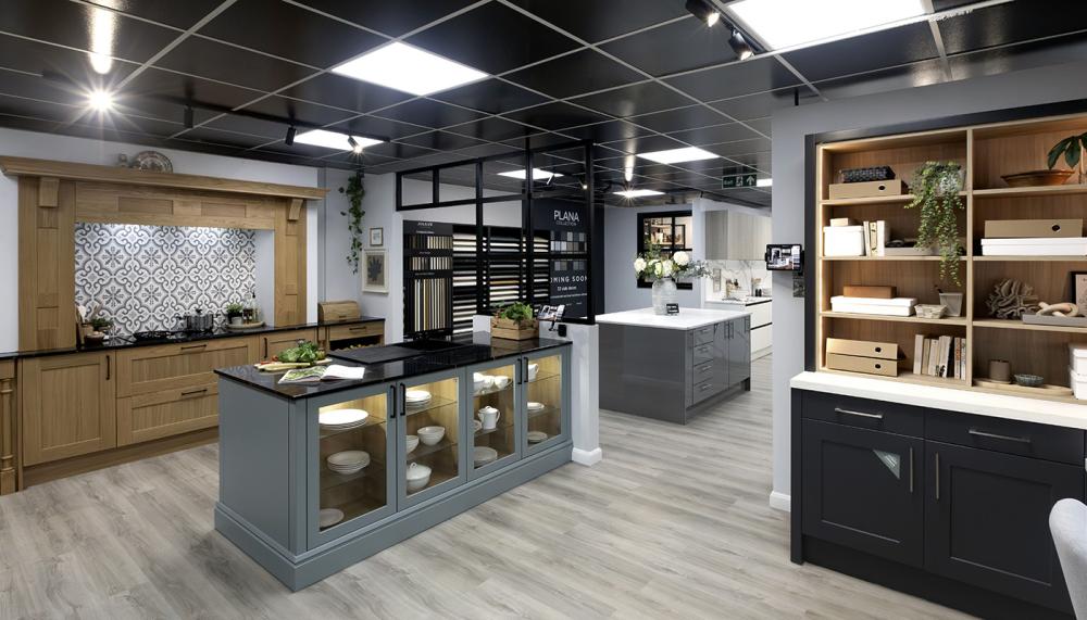 A: We’ve created a mix of aspirational and realistic roomsets that reflect the space that most designers have to work with. Paint to order continues to grow in popularity so that’s reflected in our fascia colours with a number of bespoke colours also featuring. The layout is open, allowing customers to explore in their own way with a natural flow from top to bottom but there’s no stipulated walkways.
