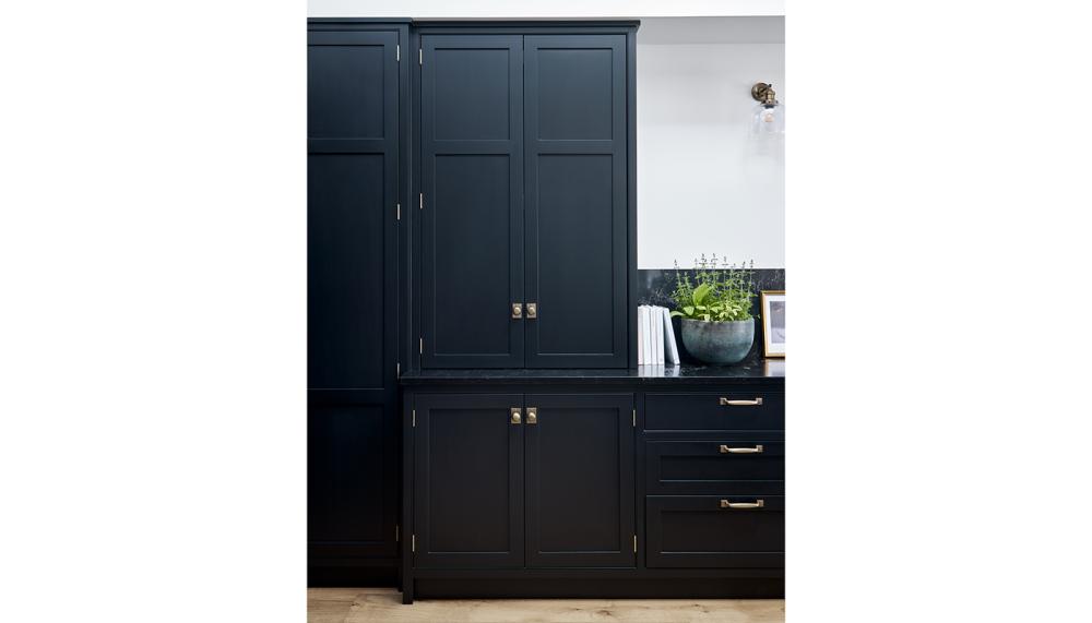 The cabinetry – painted in Little Greene’s ‘Jack Black’ – pairs beautifully with warm brass hardware from Armac Martin, while appliances from Fisher & Paykel, a cooker hood from Westin and a hot tap from Quooker were chosen for their performance and seamless integration. But it’s the thoughtful details that truly set the space apart – from the hidden breakfast station to the utility room’s brass rail for hanging laundry.