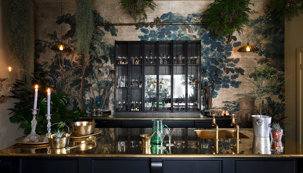 This room is a world away from the light and bright showroom entrance. A moody Haberdasher’s bar sits pride of place, with the showstopper – a polished brass worktop. This time the designers chose DeVOL's 'Bobbin Black' for a Haberdasher's showroom display and it's already captured everyone's attention on social media.