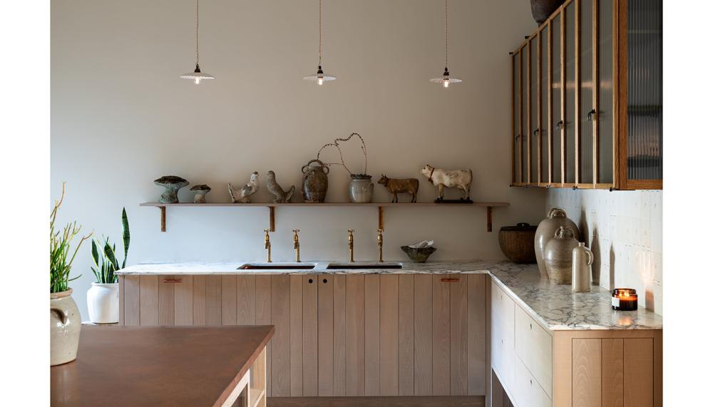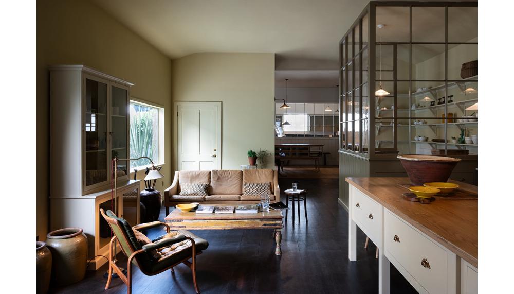 The final display in the LA showroom is a beachy mix of the company's Haberdasher’s and Sebastian Cox cupboards. They're unpainted, which means visitors can see and feel the grain of the wood, and this lends a relaxed and uncontrived feeling to the display. The aim was for customers to step inside this room and feel immediately calm, so they chose earthy, organic tones and textures that mirrored the beachy landscape just down the road from the showroom.