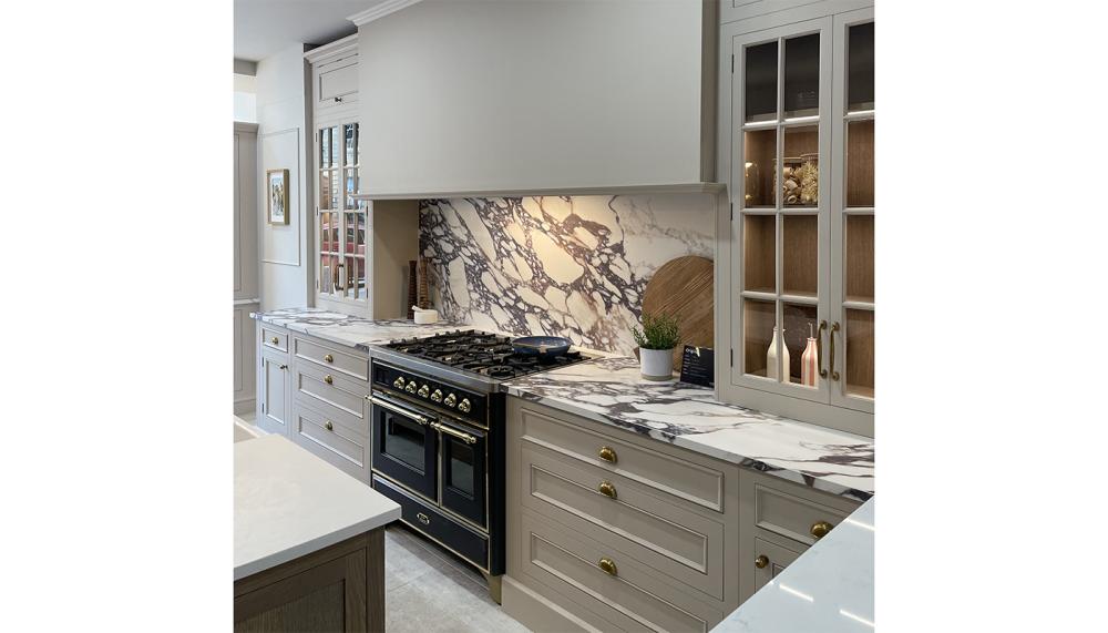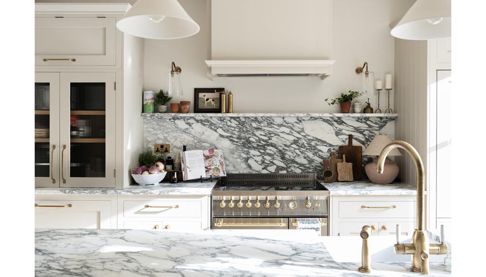 Rachel explains: “Calacatta marble is defining the shift towards more expressive kitchens, as design moves away from minimalism in favour of richer, more characterful materials that make an impact. With every slab entirely unique, my clients are embracing the artistry and individuality Calacatta brings. Its dramatic veining looks beautiful on statement islands while its reflective surface enhances natural light, making kitchens feel brighter and more spacious. Used as a statement island, a generous run of worktop or a splashback, it draws attention without overwhelming. Soft, muted cabinetry allows the marble to remain the focal point, or deeper tones like burgundy and dark greens create a sense of depth.”