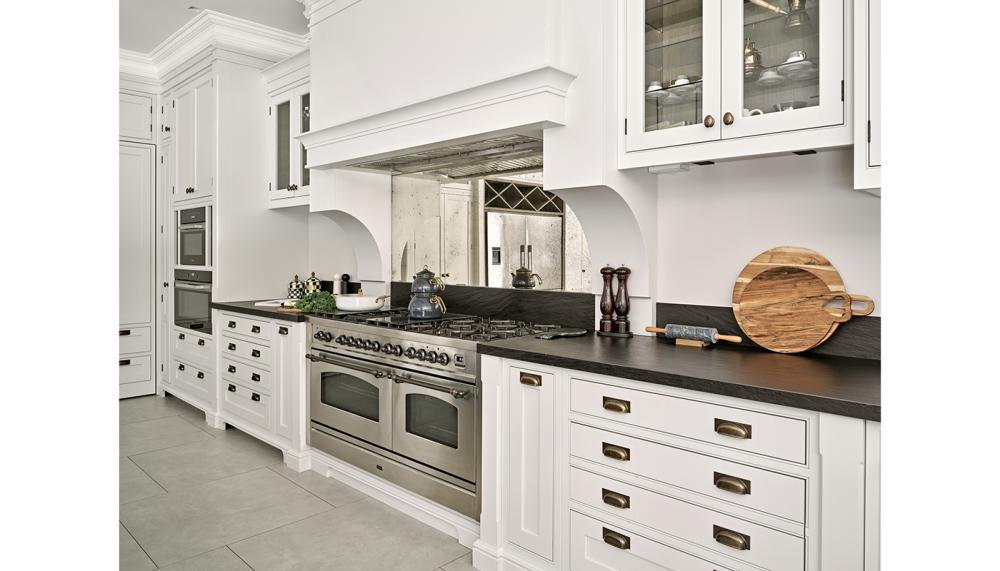 A: This project was completed within a substantial private family home, designed for clients who love to cook, entertain and host on a regular basis. The property naturally lends itself to a classic yet refined aesthetic, and the kitchen was envisioned as the heart of the home – a space that needed to feel elegant, welcoming and highly functional in equal measure.