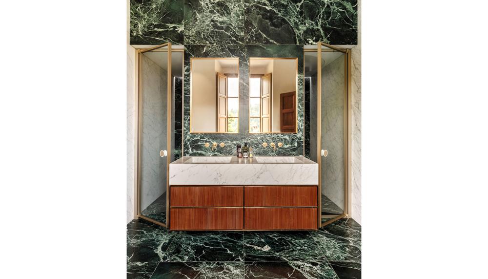 Green marble, especially, is emerging as a complementary element for biophilic design and enhanced wellbeing. Metallic accents in gold or brass work beautifully to create a warmth and a luxurious feel.