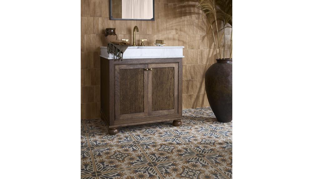 “Returning to KBB Birmingham is an important moment for us because it gives us the opportunity to step back from individual product launches and focus on the bigger picture of who we are as a brand,” says Grazzie Wilson, group brand director at Ca’ Pietra. However, visitors to its Mediterranean Roman villa-inspired stand, complete with arched forms, warm tones and layered surfaces, will be given a preview of its Spring Summer launches, including Hoxton, a new marble-effect porcelain, and Buscot Pietra Pazza, which will be shown as a bespoke stone floor. The tile specialist says it will use its central bar area to connect with visitors as it focusses on building long-term relationships with retailers, designers and specifiers. Pictured is the newly launched Indirah Cotto and Oasis Veloute Cotto, which will also be on show.