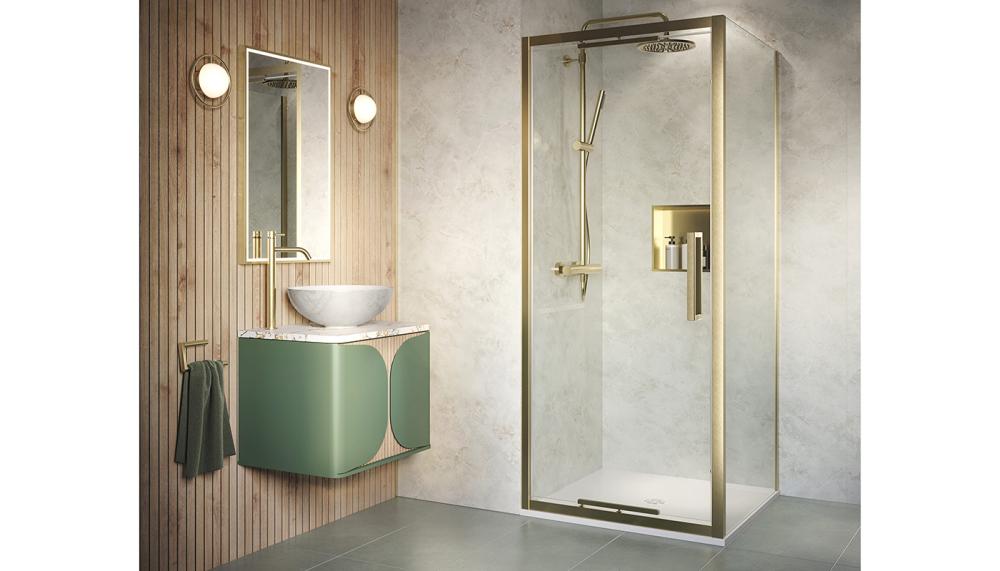 Merlyn will be collaborating with fellow Norcros brand Vado on a 140sq m stand that will feature five themed bathrooms designed in collaboration with Jo Love. Each will show Vado collections, including the new Safari range, incorporating brassware, vanities and furniture alongside premium shower enclosures and trays, in a variety of colours and finishes, from Merlyn. “We’re delighted to be collaborating with our sister company, Vado, for the first time at KBB Birmingham 2026. Our goal is simple: to make the journey easier for our customers by presenting a complete bathroom offering together in one space,” says Eileen Slattery, marketing director at Merlyn. Pictured in brushed brass is Merlyn’s ARYSTO-X.