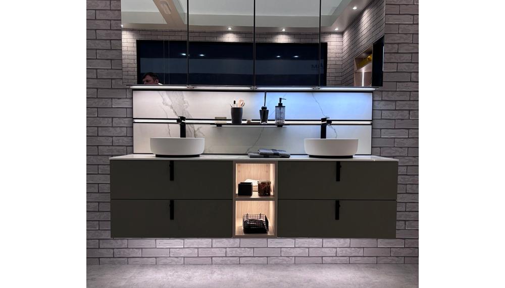 While Rotpunkt’s kitchen side was celebrated with the award for Best Kitchen Stand over 30sq m, its new bathroom furniture, which is part of the German brand’s new whole-house offering, was also attracting plenty of attention. Seen within the ‘secret studio apartment’, which also featured kitchen, living and dressing room displays, the new contemporary, handleless bathroom furniture is available in all of the company’s colours and finishes. Pictured is a mix of Zerox MA Tundra furniture shown as ‘his & her’ double vanity unit with Class VI wall units in Mirror, and natural wood accents in variations of Scandinavian Oak. Matt Phillips, head of UK operations at Rotpunkt, said: “This show always provides us with an industry-rich networking environment. 2026 marked our 14th consecutive year as exhibitors at KBB Birmingham, and the ongoing development of Rotpunkt as a true furniture brand.”