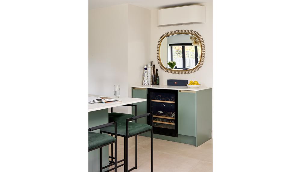 They also wanted the island to be kept clear for food preparation and entertaining, whilst having a separate section for a bar for their drinks and wine fridge.
