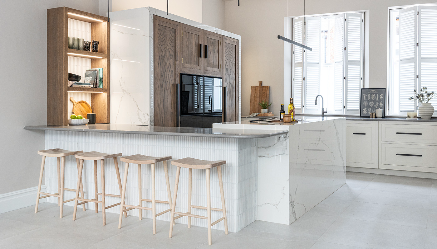 A: Funnily enough, I have just designed my own kitchen. I chose a stunning marble finish for the worktops from Italy with contrasting dark units, which works so well against the pale marble finish. The island is 3 x 1.3m and incorporates a BORA classic hob as we love to cook and entertain, so that was important for us as a family. I also designed a pocket-door pantry with a built-in coffee centre as we love coffee. It's also useful for other small appliances, and so on. The island is also designed to have drawers on both sides to maximise storage and convenience.