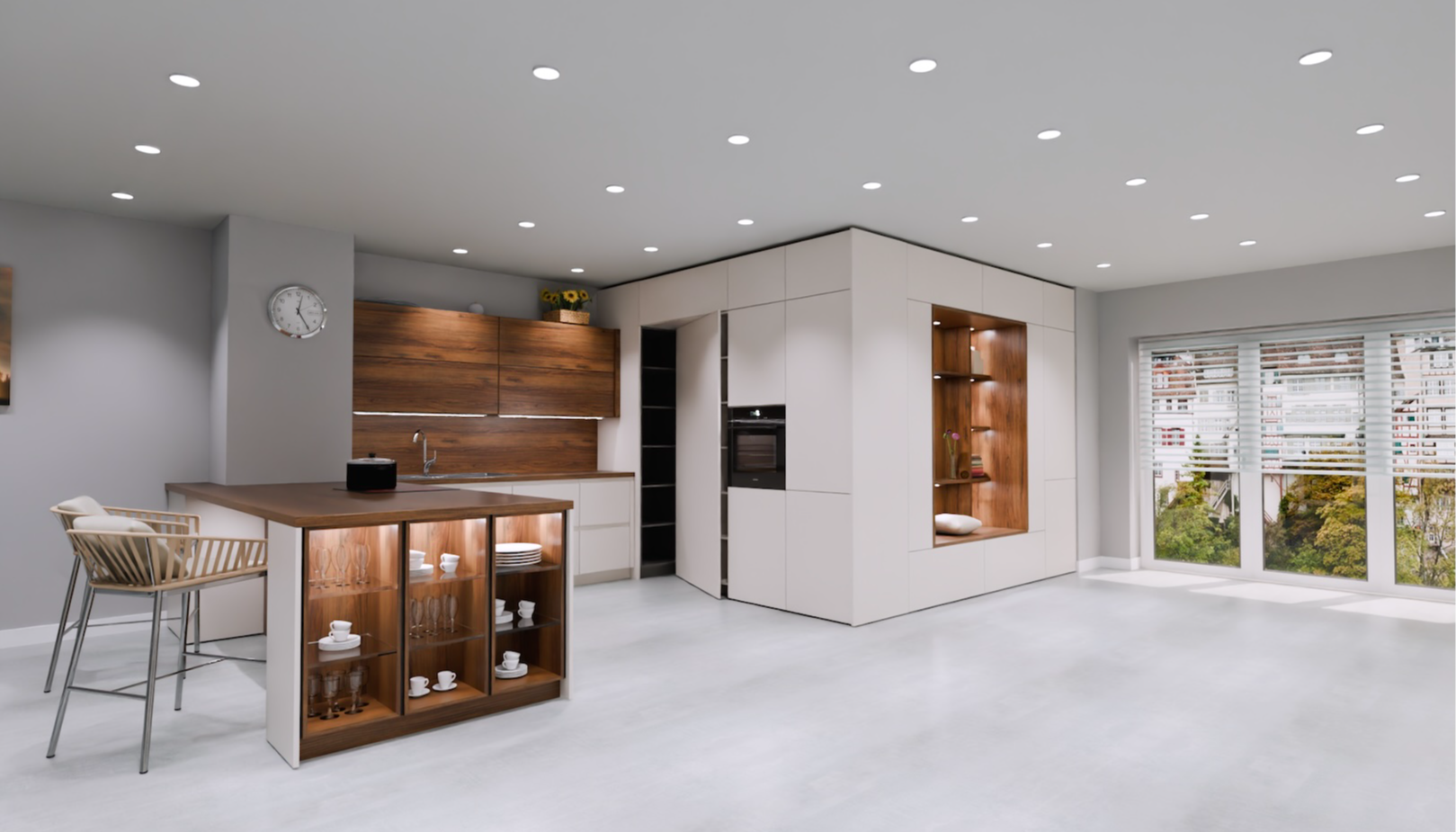 A: We went for Rotpunkt Syncro Laminate Flamed Wood – it offers high levels of bespoke-ability and is also really hardwearing.
