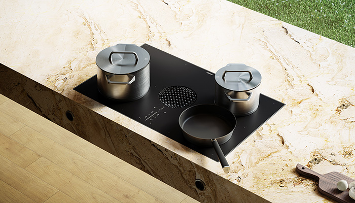 An induction hob with an integrated ventilation system allows designers much more flexibility within the kitchen layout, as the integrated extractor unit eliminates the need for an overhead or wall extractor.
