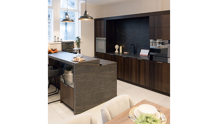 A: We wanted to create a hub – a one-stop shop where the customer can feel at home. We wanted it to be almost like they’re in their own kitchen and can chop and change things. It’s an immersive experience and a better journey for the customer. We also do cooking demos now. The bank is a big space so the kitchens have to complement each other so it doesn’t look mismatched. We chose 5 or 6 of our best styles, created a great atmosphere and made sure the colours all worked with each other.
