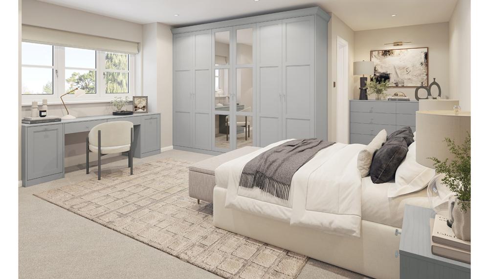 Styled in a soothing dove grey, Verona is a slim shaker design that exudes an understated elegance. At the heart of the room is a luxurious mirrored wardrobe, paired with a sleek dressing table and spacious chest of drawers to organise everyday essentials. Retailers can choose from a palette of 22 stunning painted shades to easily personalise to the customers style preferences.