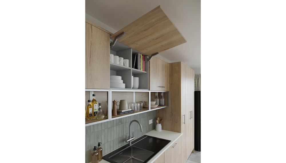 Ideal for modern busy lifestyles, maximising every centimetre of space is essential especially in a smaller kitchen. Crown Frameworks offers a smart open shelving solution that utilities the space under cabinetry and provides instant access to everyday essentials.