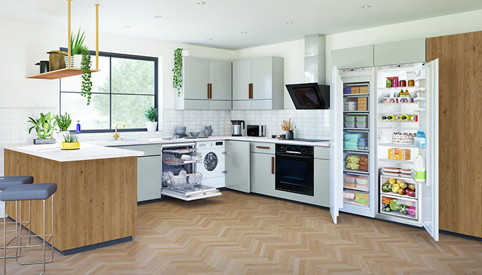 Whether they’re located in a separate utility room, or within a kitchen design, it makes sense to have laundry products that share both looks and tech...